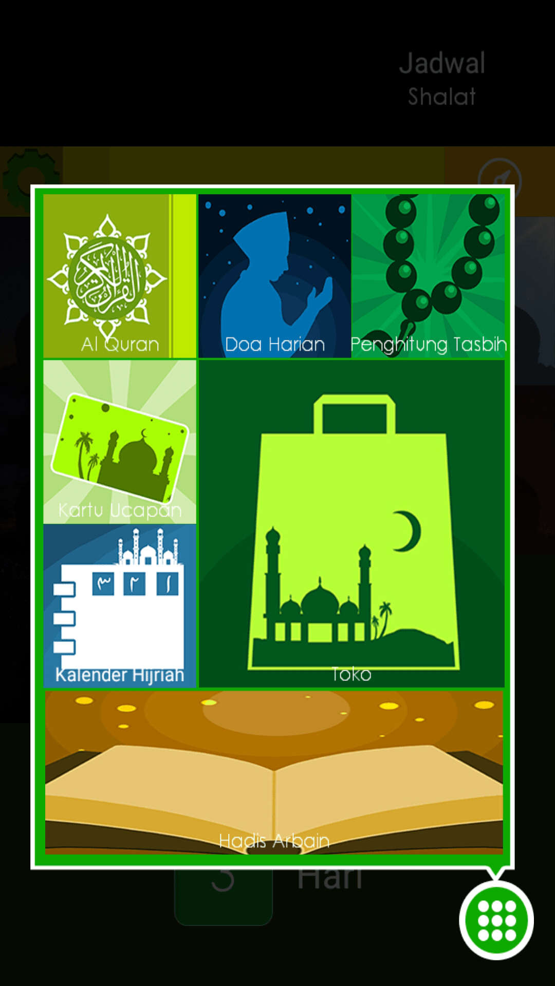 Fitur lainnya seperti Doa Harian disertai audio, Hadis Arbain juga disertai audio, Penghitung Tasbih dengan audio dan fungsi getar, dapat diatur otomatis maupun manual.