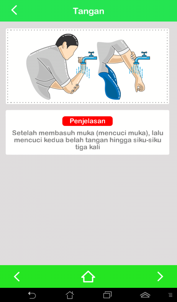 – Disertai gambar panduan berwudhu dan gerakan sholat